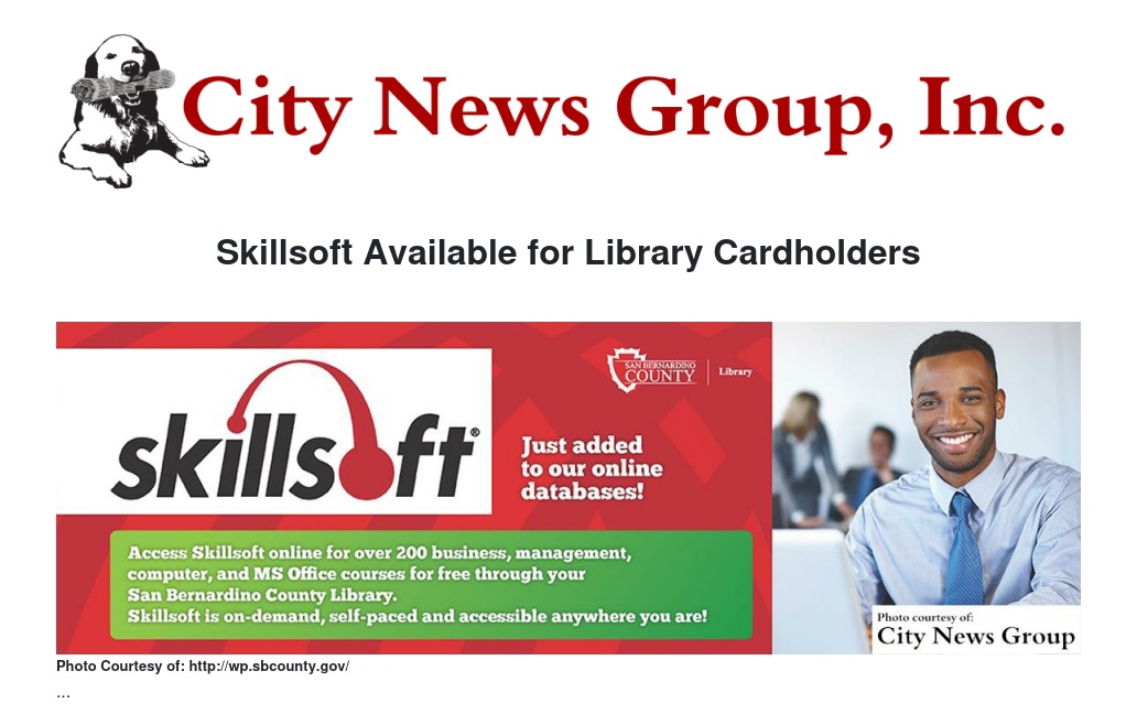 The San Bernardino County Library is excited to announce Skillsoft is now available among its collection of free online databases.