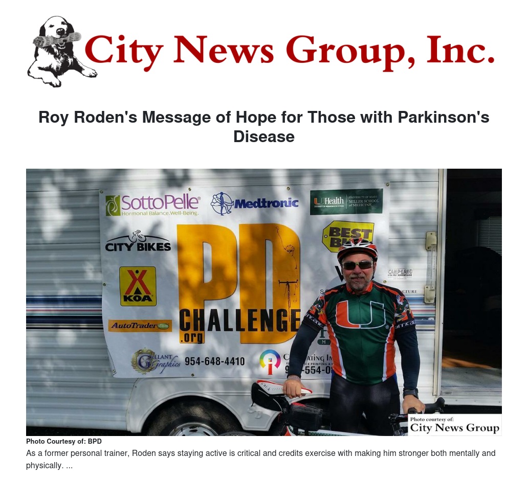 Three years ago biking down the block would not have been possible for motivational speaker Roy Roden, one of the 1.5 million Americans who suffer from Parkinson's disease. But recently he embarked on a journey he calls the PD Challenge -- a bike ride from British Colombia to San Francisco to raise awareness of Parkinson's disease. His message to others with Parkinson's is powerfully simple - stay active, be your own advocate, keep a positive attitude, and don't give up hope.