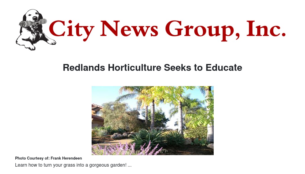 Redlands Horticulture and Improvement Society invites the public to its Thursday, Sept. 18 general meeting.