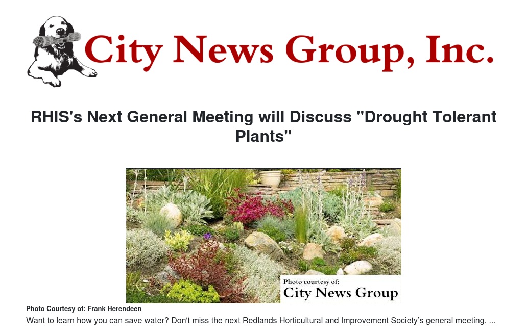RHIS's Next General Meeting will Discuss "Drought Tolerant Plants"