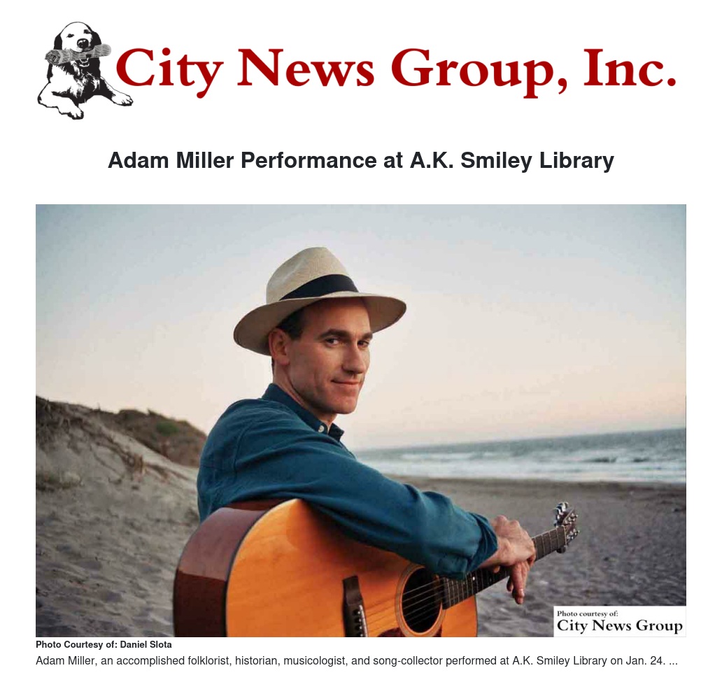 One of the premier autoharpists in the world, Adam Miller, is a renowned American folksinger and natural-born storyteller. An accomplished folklorist, historian, musicologist, and song-collector, he has amassed a repertoire of over 5,000 songs.