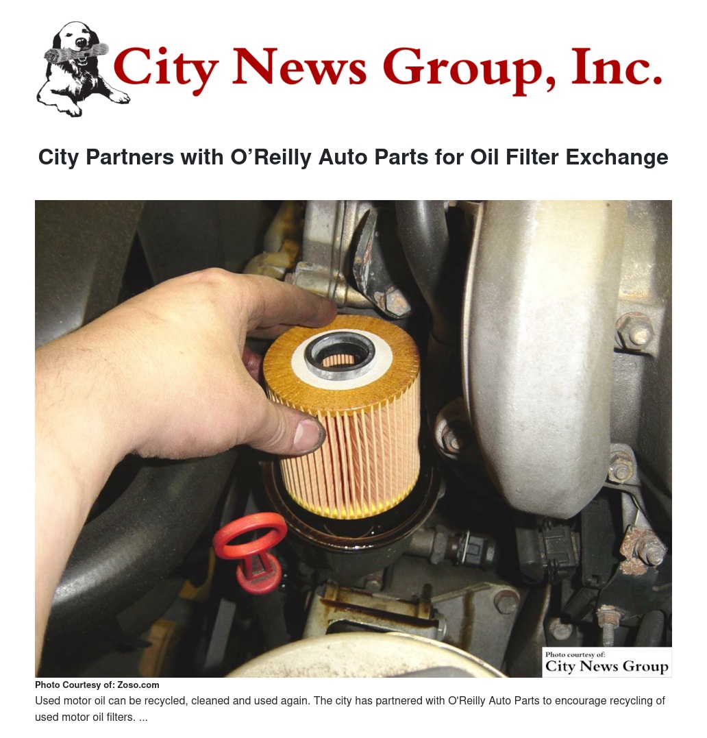 City Partners with O’Reilly Auto Parts for Oil Filter Exchange