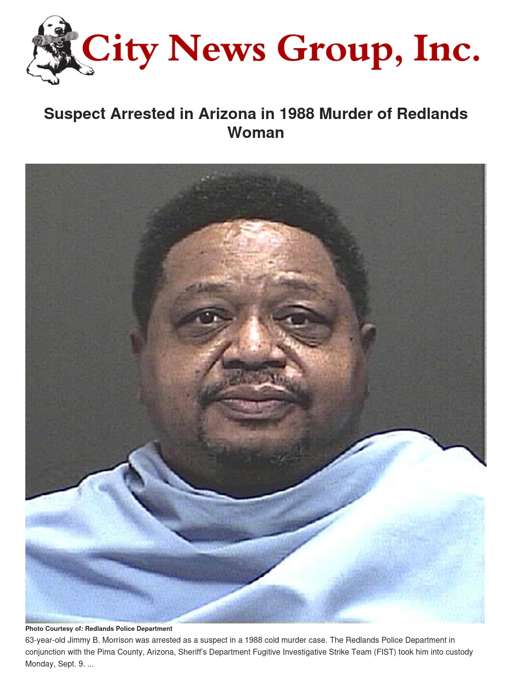 On Monday, Sept. 9, Redlands Police detectives in a joint effort with the Pima County, Arizona, Sheriff’s Department Fugitive Investigative Strike Team (FIST) arrested a suspect in the 1988 cold case murder of a 56-year-old Redlands woman.