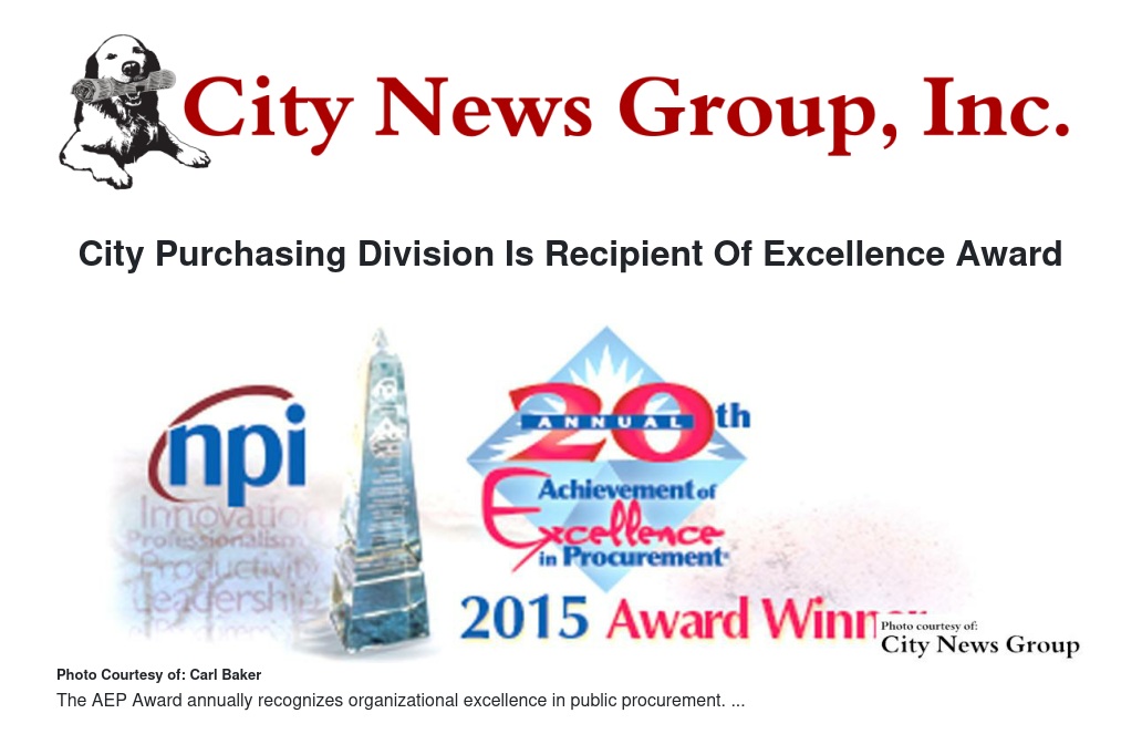 City Purchasing Division Is Recipient Of Excellence Award