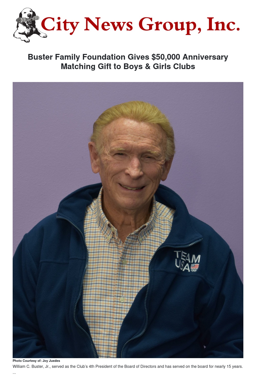 “The Buster Family Foundation’s generosity allows us to do what we do every year – serve more kids, more often,” said Club CEO P.T. McEwen. “We are fortunate to have such committed friends of the Club. It is a great capstone as we close out our 50th anniversary celebrations.”