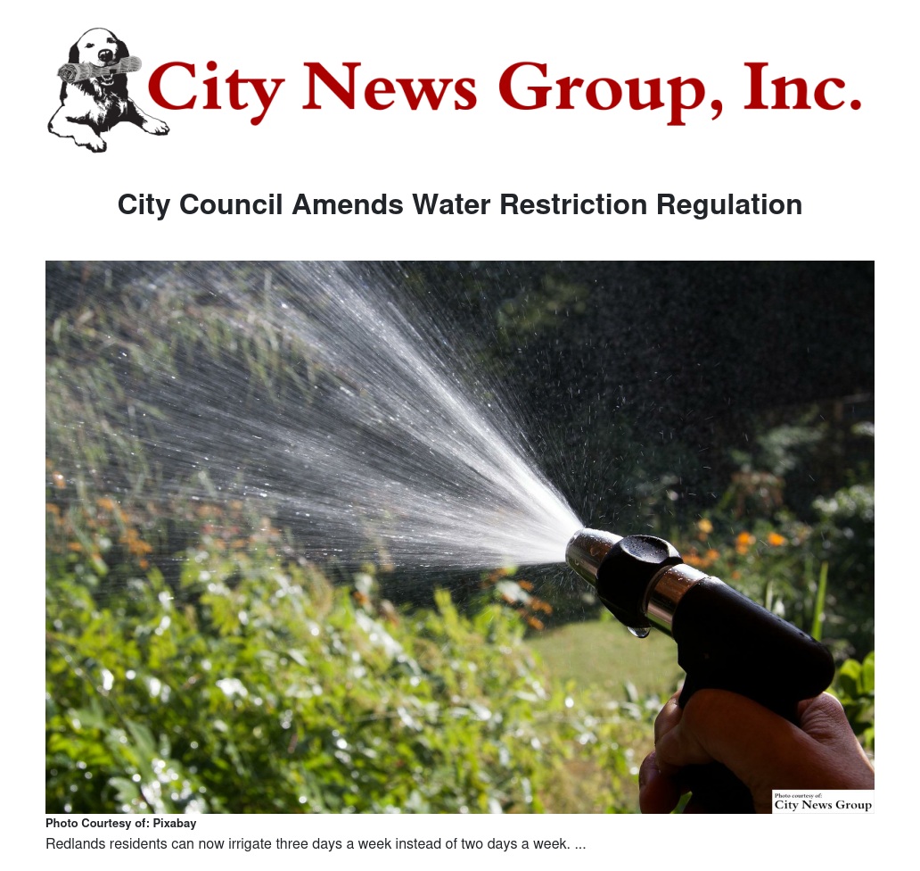 REDLANDS >> The Redlands City Council voted to amend the water restriction July 5 to allow residents to water three times a week instead of two days a week.