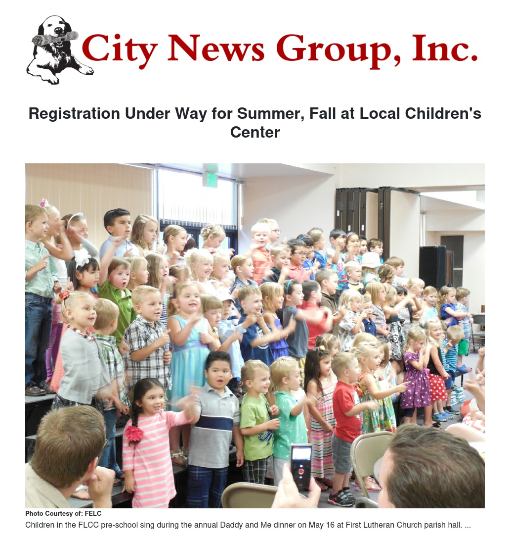 First Lutheran Children’s Center, 1207 W. Cypress Ave., is now enrolling students for its “Summer Fun Program” and the 2014-15 school year.