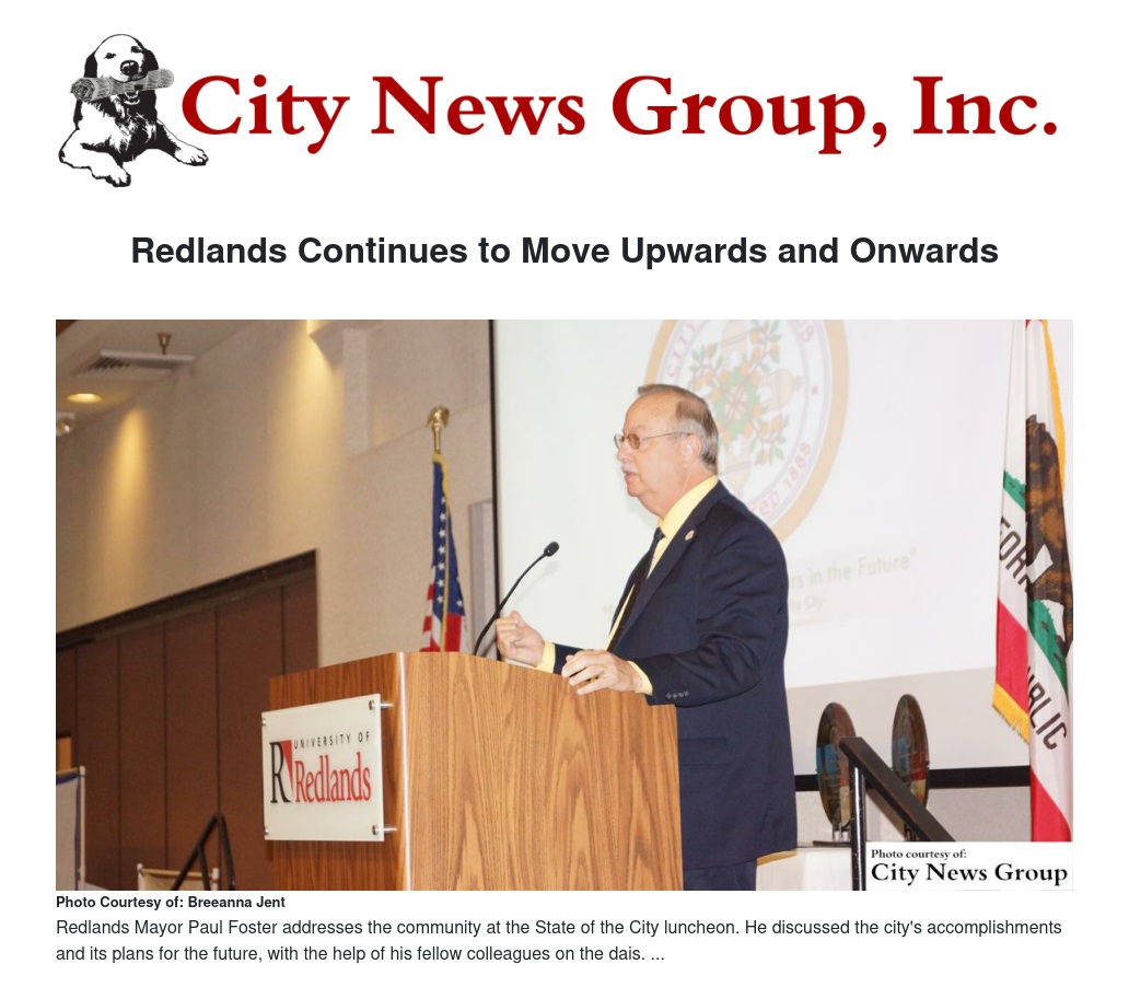 In the last year the City of Redlands has met several accomplishments and continues on a path of economic stability, expansions in infrastructure, a vibrant artistic culture that draws people from around the world, and overall growth. That's what city leaders told the event's largest audience in its history - this year more than double its typical attendance, noted Mayor Paul Foster - at the University of Redlands Orton Center last Thursday, June 25. The address was hosted by the City of Redlands and the Redlands Chamber of Commerce.