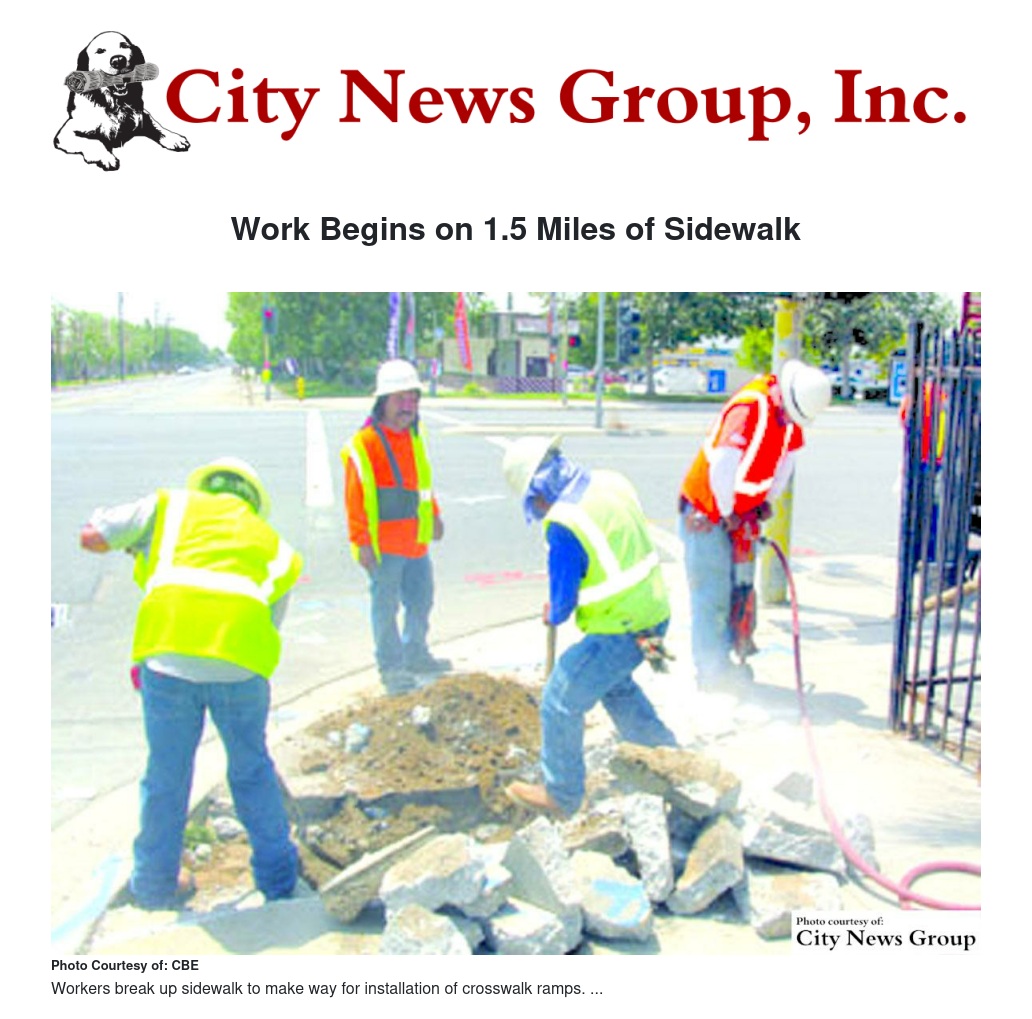 Work has begun on construction on a mile and a half of sidewalk and ADA access ramps in Community Development Block Grant areas where no such facilities previously existed.