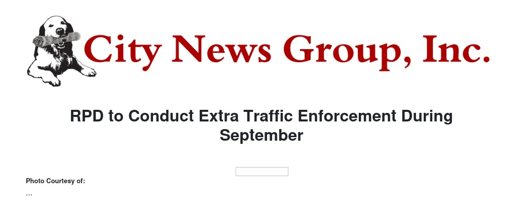 RPD to Conduct Extra Traffic Enforcement During September
