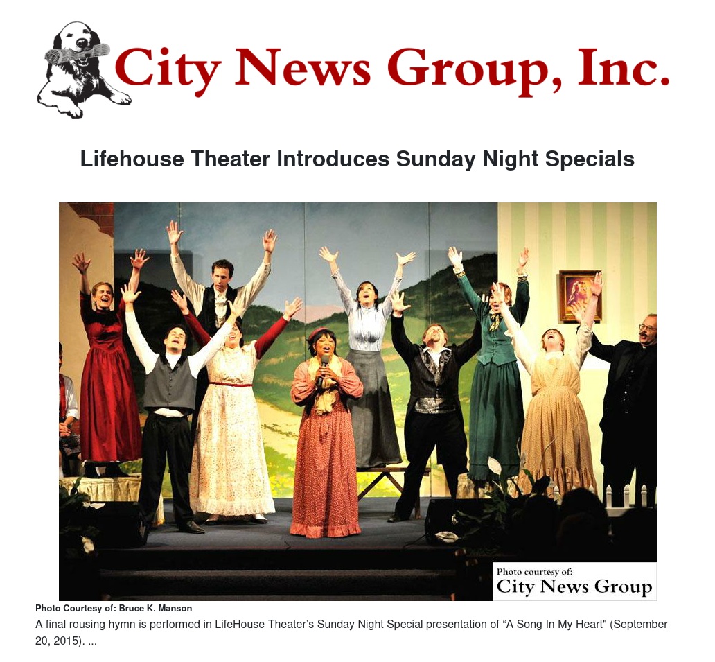 On select Sunday nights, LifeHouse will present special one-act productions, both plays and musicals, ranging from dramatic to comedic and from inspirational to hilarious. Each Sunday Night Special will be presented for either one or two night only engagements.