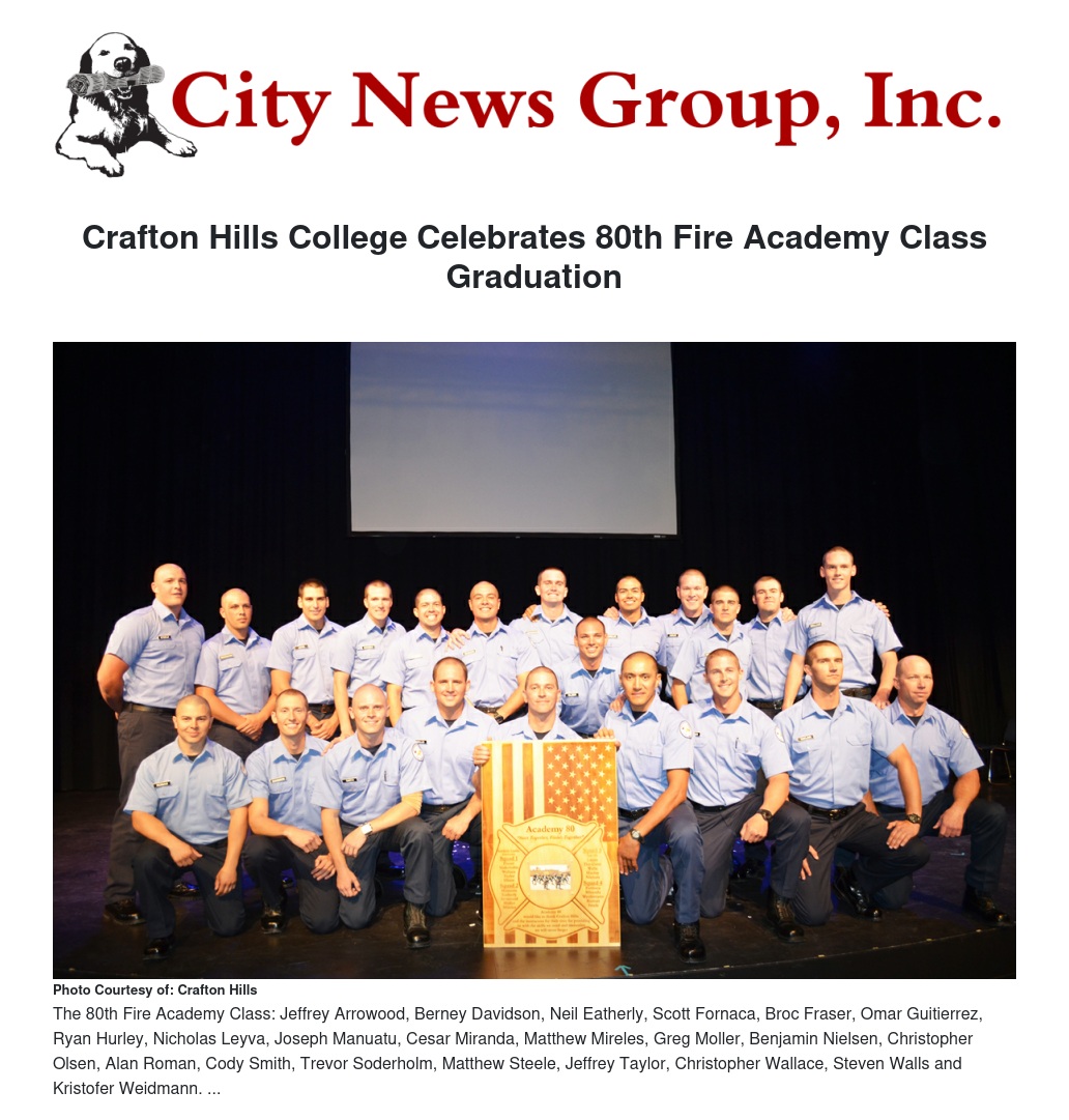 Crafton Hills College (CHC) recently graduated its 80th Fire Academy Class in the Performing Arts Center.