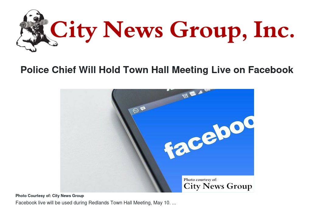 Police Chief Will Hold Town Hall Meeting Live on Facebook by Julia Nunez - City News Group, Inc.
