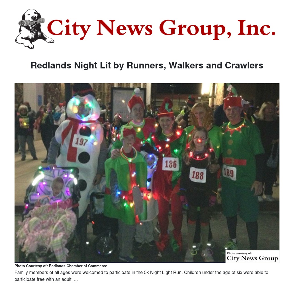 On Saturday, Dec. 27 the Redlands Chamber of Commerce hosted their annual Night Light 5K Run. While “5K run” may deter many residents from entering, the chamber emphasized that the goal of the event was to gather together the families, friends and community of Redlands for a night of fun, regardless of whether they decided to run, walk, skip or crawl to the finish line.