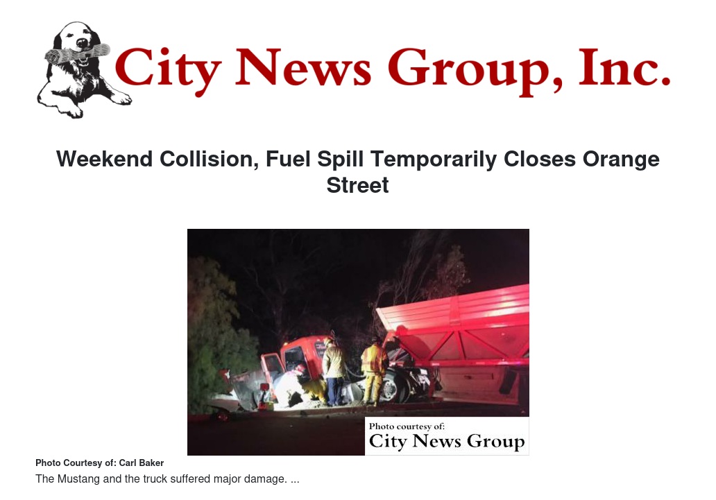 At about 7 p.m. Saturday, Feb. 4, an unidentified vehicle traveling north on Orange Street near the Redlands Shooting Park veered across the double yellow line and into the southbound lane. A Ford Mustang traveling in the southbound lane swerved to avoid the vehicle and collided with a semi-truck and trailer in the northbound lane.