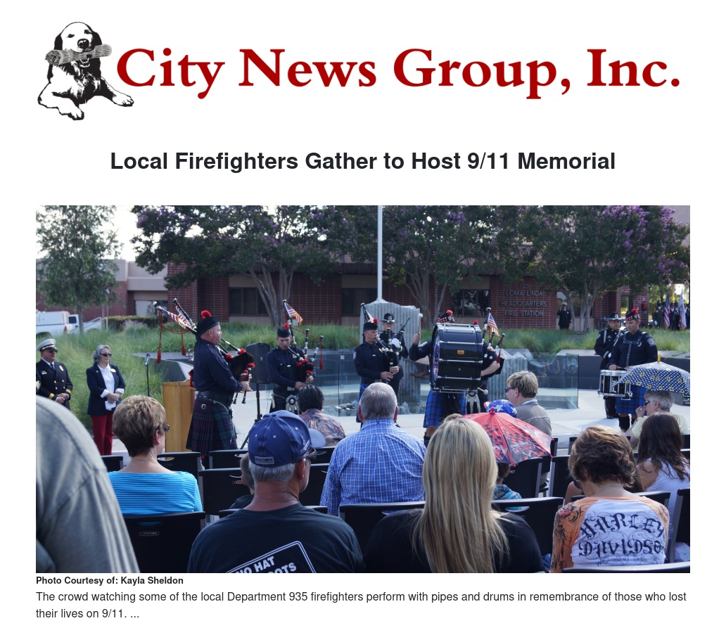 Prior to the event, Quaid Harley Davidson and Loma Linda Harley Owners Group hosted a 9/11 Memorial Ride that traveled through Loma Linda and to the ceremony.