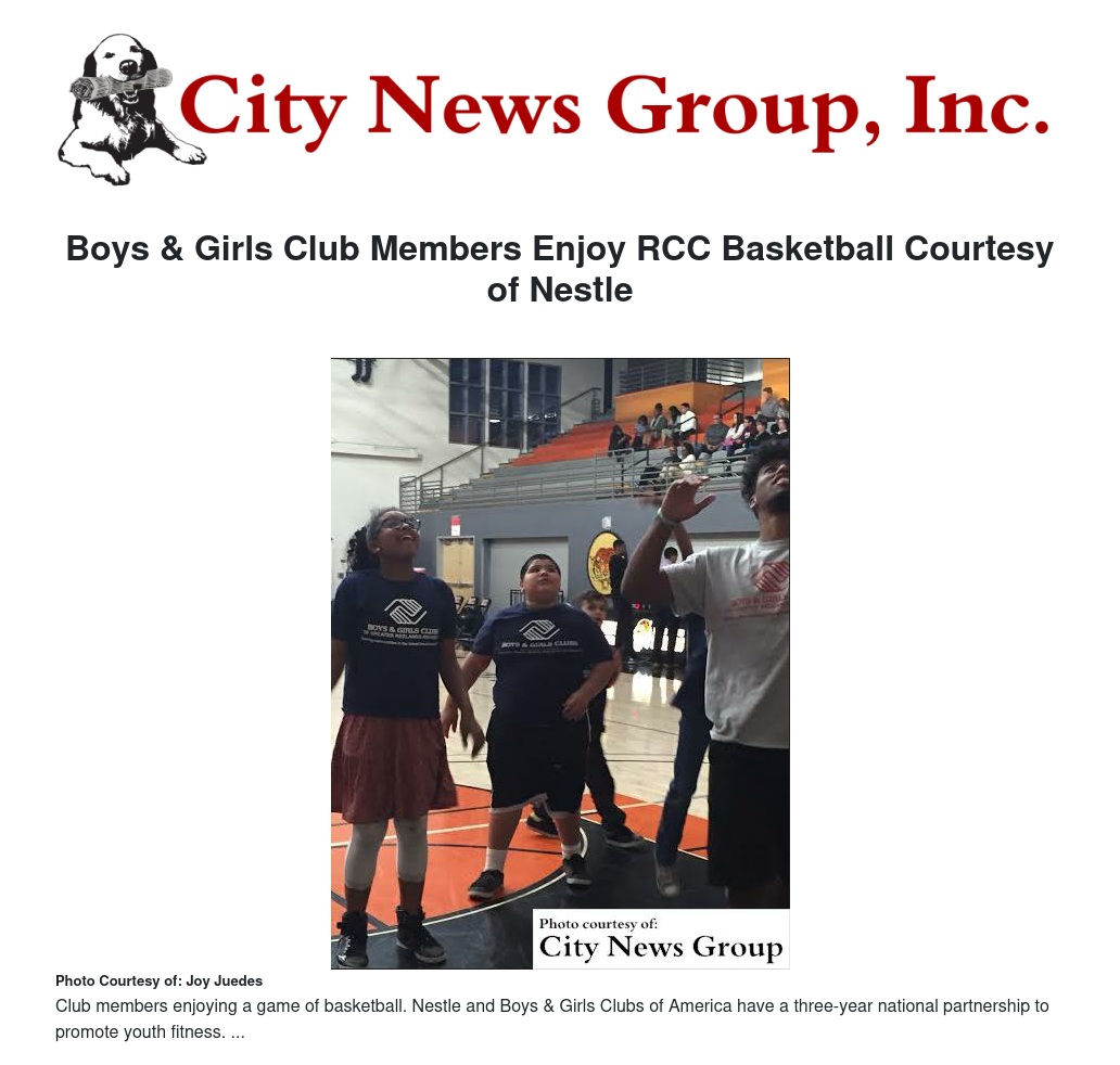 Boys & Girls Club Members Enjoy RCC Basketball Courtesy of Nestle