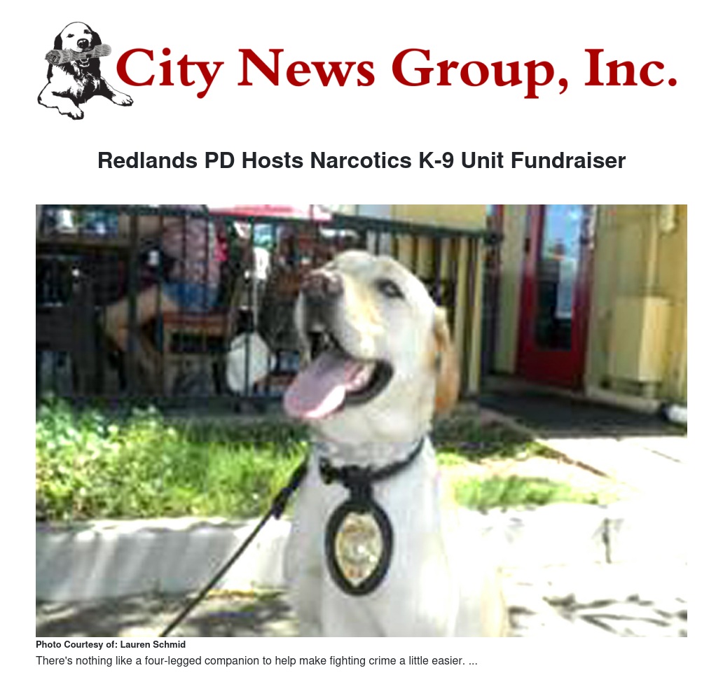 Redlands PD Hosts Narcotics K-9 Unit Fundraiser