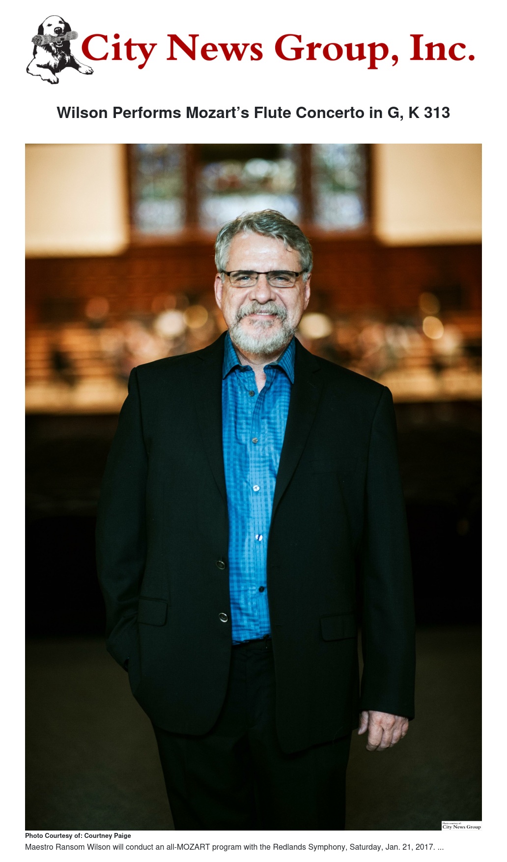 REDLANDS >> On Saturday, Jan. 21, 2017, Maestro Ransom Wilson conducts the Redlands Symphony in an all-MOZART concert, highlighted by Wilson performing the great master’s Flute Concerto in G, K 313.