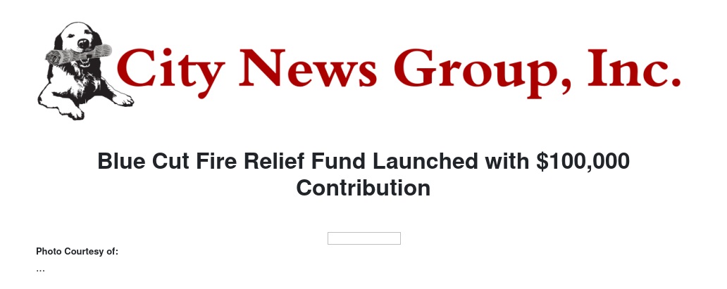 Blue Cut Fire Relief Fund Launched with $100,000 Contribution