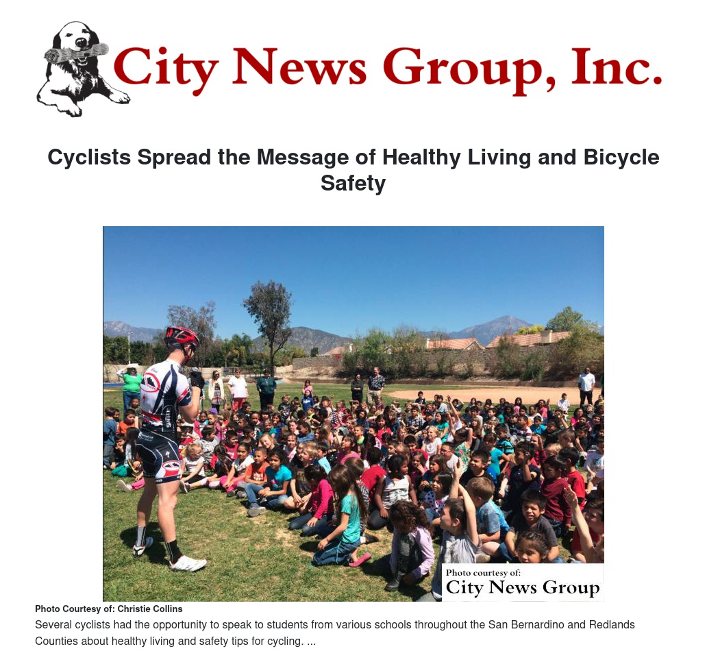 Professional cyclists Brian and Joy McCulloch, husband and wife, have participated in the Classic for several years, Brian’s seventh time and Joy’s sixth time. Every year they take the time to make a trip to local schools to talk to a myriad of children within the San Bernardino and Redlands County School Districts.