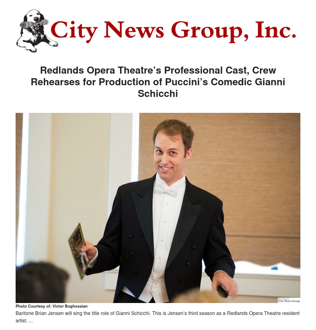 Redlands Opera Theatre is busy rehearsing the first opera of its 2016-17 season, Puccini’s Gianni Schicchi, opening for four performances Nov. 4.
