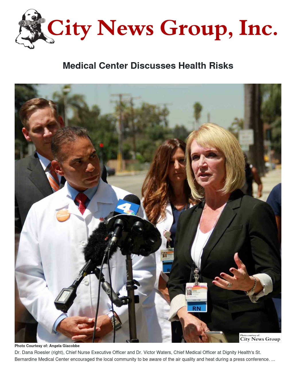 SAN BERNARDINO>> During a recent press conference, Dignity Health's St. Bernardine Medical Center Chief Medical Officer, Dr. Victor Waters, encouraged the local community to be aware of the air quality and heat and to take preventive measures to minimize health risks such as staying indoors and avoiding strenuous exercise.