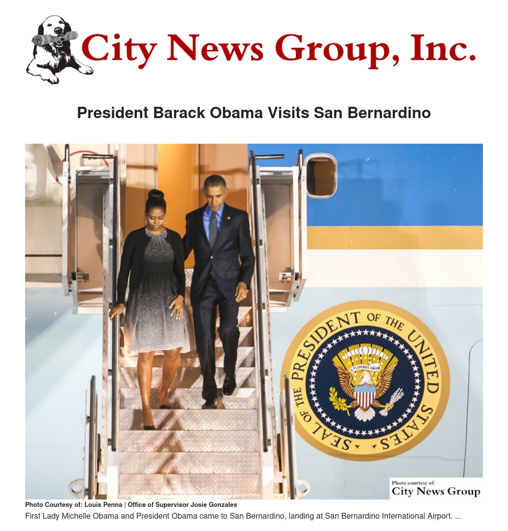 President Barack Obama stopped in San Bernardino on Friday to hold a private meeting with the families of the victims of the mass shooting that took place on Dec. 2 in San Bernardino at the Inland Regional Center.
