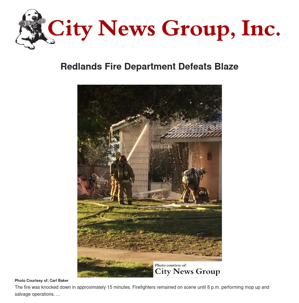 The Redlands Fire Department’s volunteer chaplain responded to the scene to assist the displaced residents. The Fire Department provided the occupants with SAVE (Supplying Aid to Victims of Emergencies) cards through the California Professional Firefighters California Fire Foundation. These cards provide funds to assist with expenses during an emergency incident where significant damage and loss occurs. The Red Cross also is providing assistance for the residents.