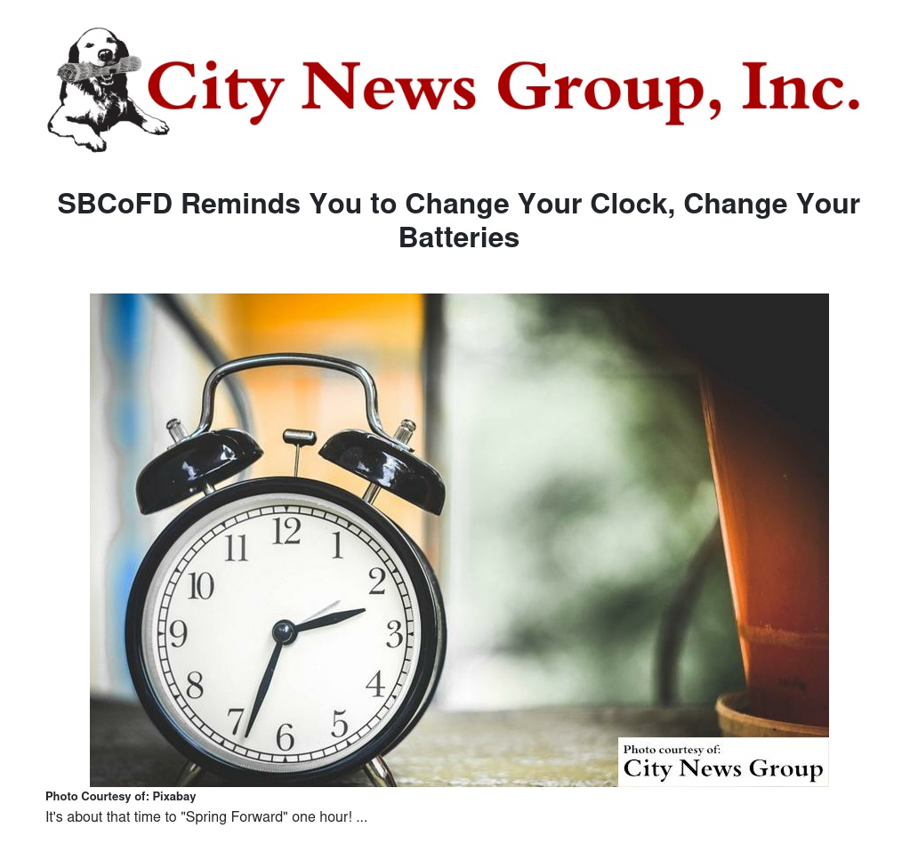 SBCoFD Reminds You to Change Your Clock, Change Your Batteries