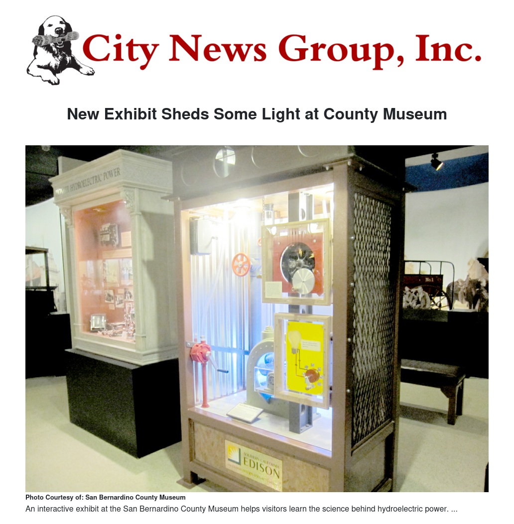 A new interactive exhibit at the San Bernardino County Museum invites visitors to learn the science behind hydroelectric power with hands-on activities and informative text panels. The display, funded by a grant from the Edison Foundation, enhances the current exhibit of hydroelectric power in the museum’s Hall of History. The exhibit is included with paid museum admission and will continue indefinitely.