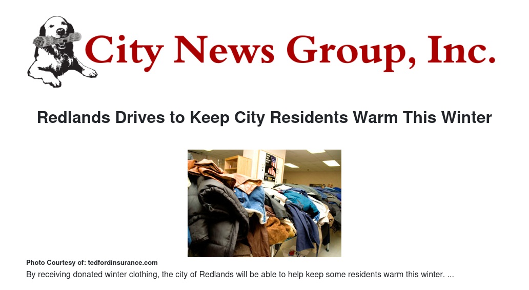 Redlands Drives to Keep City Residents Warm This Winter
