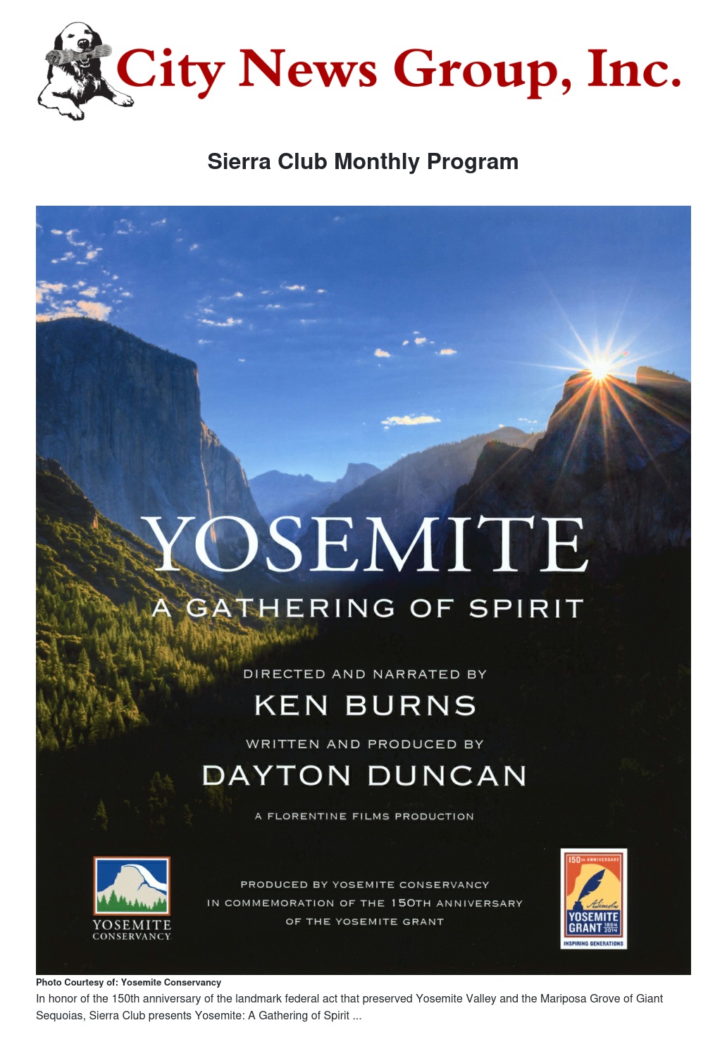Join us for Ken Burns’ Yosemite: A Gathering of Spirit, a 27-minute documentary film produced to honor the 150th anniversary of the landmark federal act signed by Abraham Lincoln that preserved Yosemite Valley and the Mariposa Grove of Giant Sequoias. This act, the first time a government set aside land for public use and enjoyment, gave birth to the national park idea.
