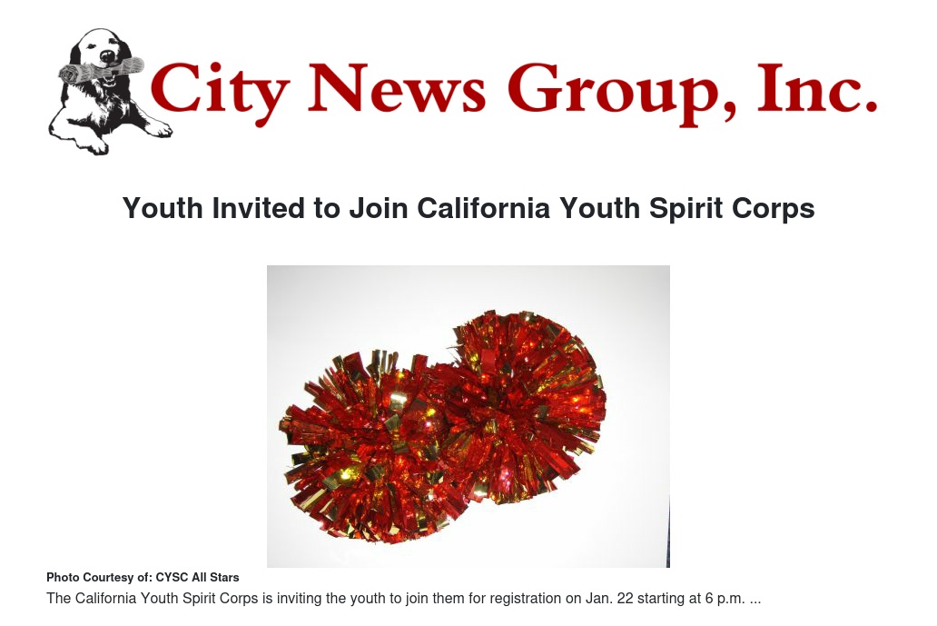 The Redlands Recreation Division invites young people to join the California Youth Spirit Corps (CYSC). The corps has been the area’s largest youth performance cheer team for more than 25 years.