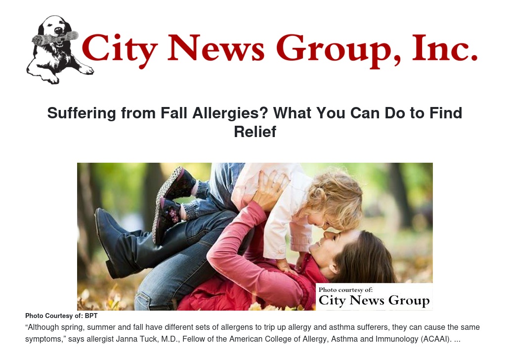 “Although spring, summer and fall have different sets of allergens to trip up allergy and asthma sufferers, they can cause the same symptoms,” says allergist Janna Tuck, M.D., Fellow of the American College of Allergy, Asthma and Immunology (ACAAI). “Those who have multiple triggers, may not be able to distinguish between what’s causing their symptoms. They just know they’re congested, with red eyes and an itchy nose.”