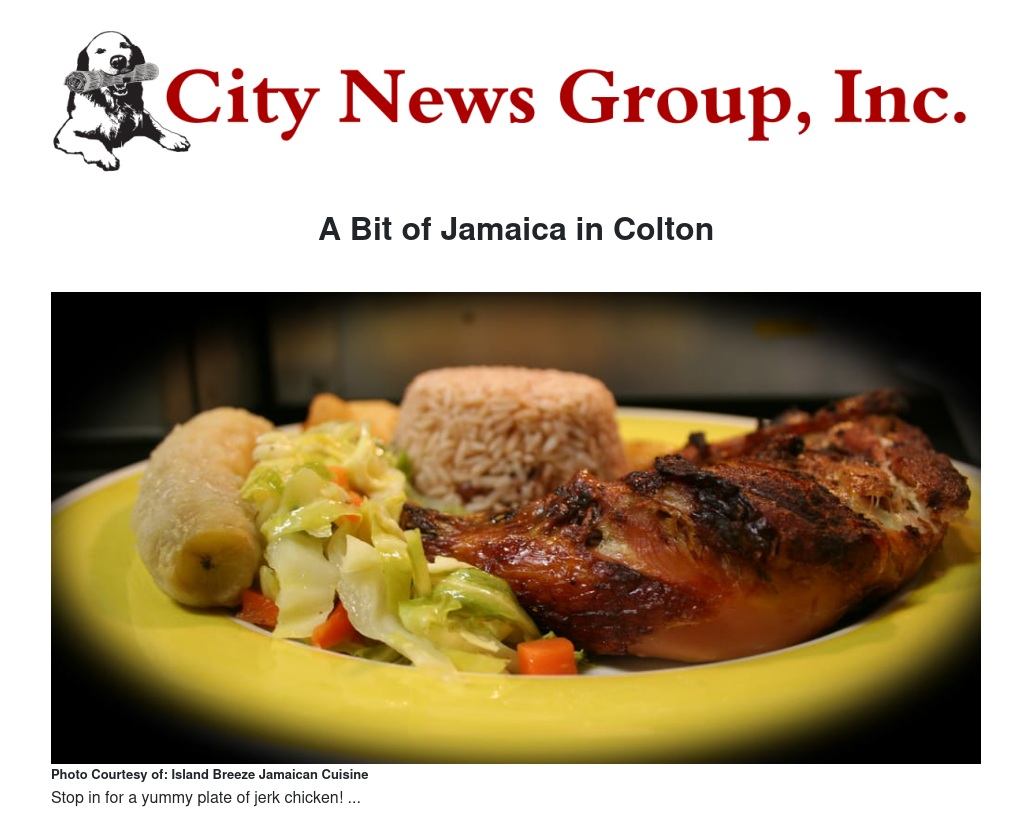Island Breeze is located at 1063 Mount Vernon Ave. in the city of Colton, they can be reached at 909-514-0771 or you can visit their website is www.ibjamaicancuisine.com where you can find their full menu.
