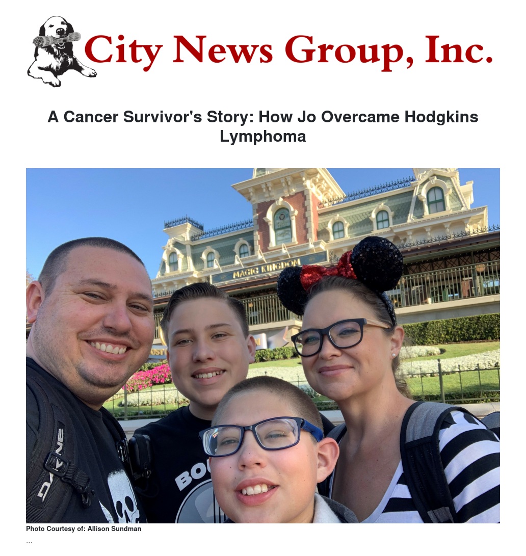 Jo was diagnosed with Hodgkin's lymphoma, a type of cancer that affects the lymphatic system, which is part of the body's germ-fighting immune system. In Hodgkin's lymphoma, white blood cells called lymphocytes grow out of control, causing swollen lymph nodes and growth throughout the body. As the cancer progresses, it limits the body's ability to fight infection.