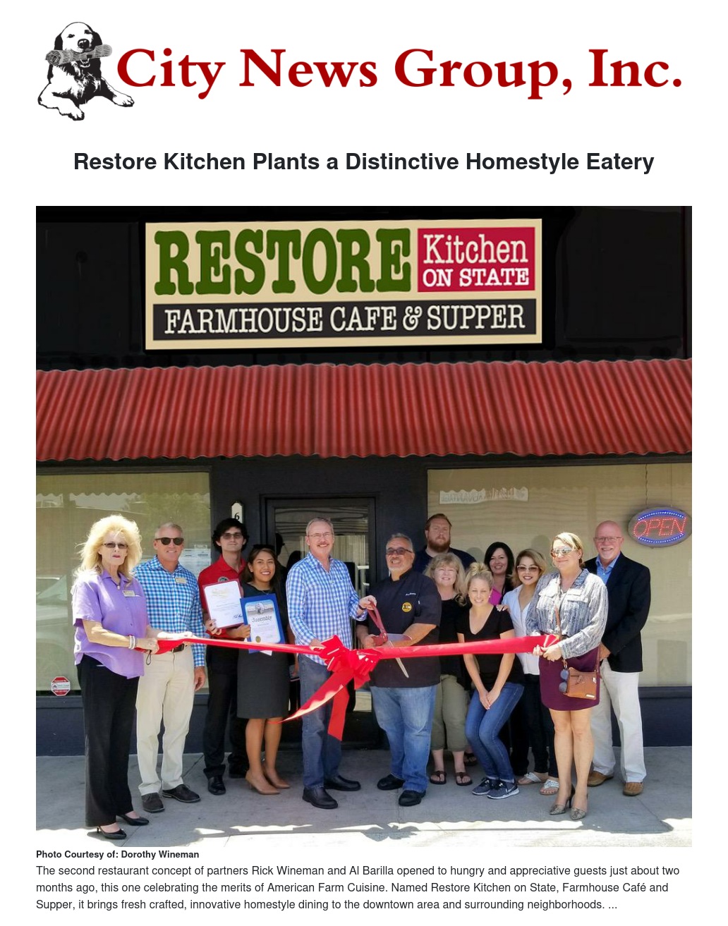 The second restaurant concept of partners Rick Wineman and Al Barilla opened to hungry and appreciative guests just about two months ago, this one celebrating the merits of American Farm Cuisine. Named Restore Kitchen on State, Farmhouse Café and Supper, it brings fresh crafted, innovative homestyle dining to the downtown area and surrounding neighborhoods. The same culinary values prevail as in their first location at 1711 Lugonia, Restore Kitchen, Craft Food Beer and Wine: elevated, made-from-scratch food, good locally made craft beer and boutique wines, but this one has a more traditional dinner menu, and an expanded breakfast menu, which is also served all day.