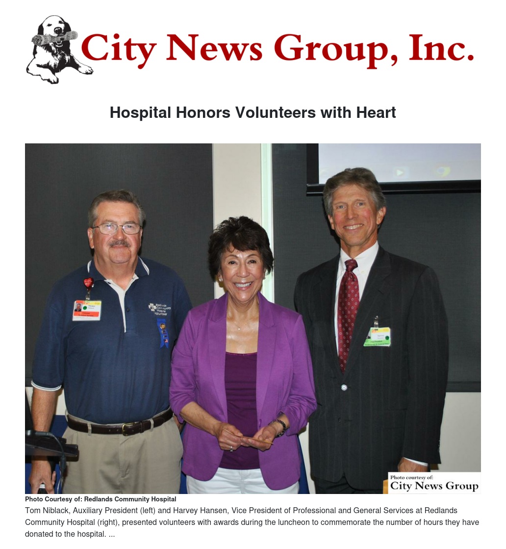 The thousands of hours of personal service that the volunteers provide is one of the things that makes Redlands Community Hospital outshine similar medical facilities, said Harvey Hansen, Vice President of Professional and General Services at Redlands Community Hospital. Last year alone, more than 48,000 hours were donated to the hospital by its dedicated volunteers.