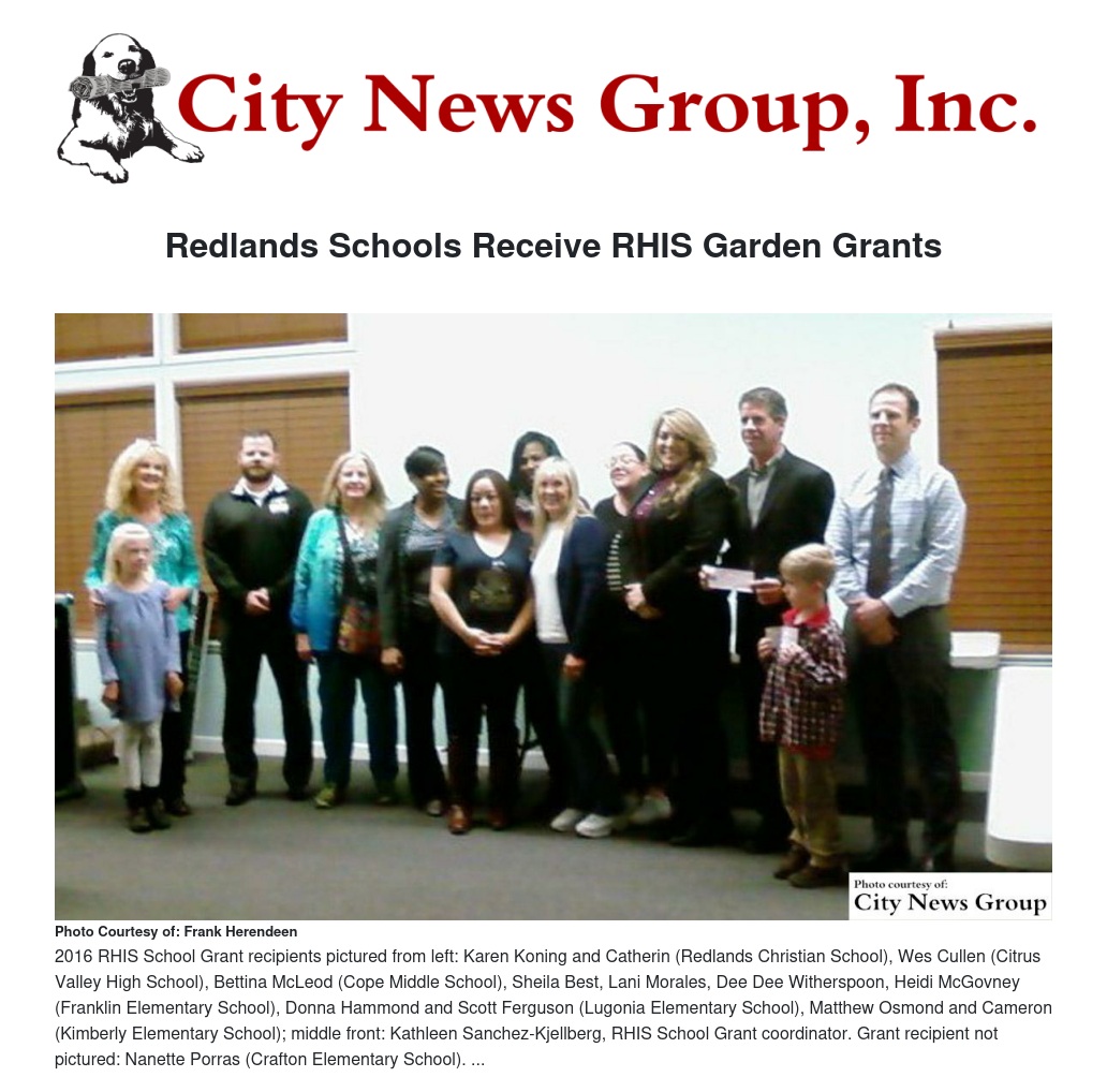 Redlands Schools Receive RHIS Garden Grants