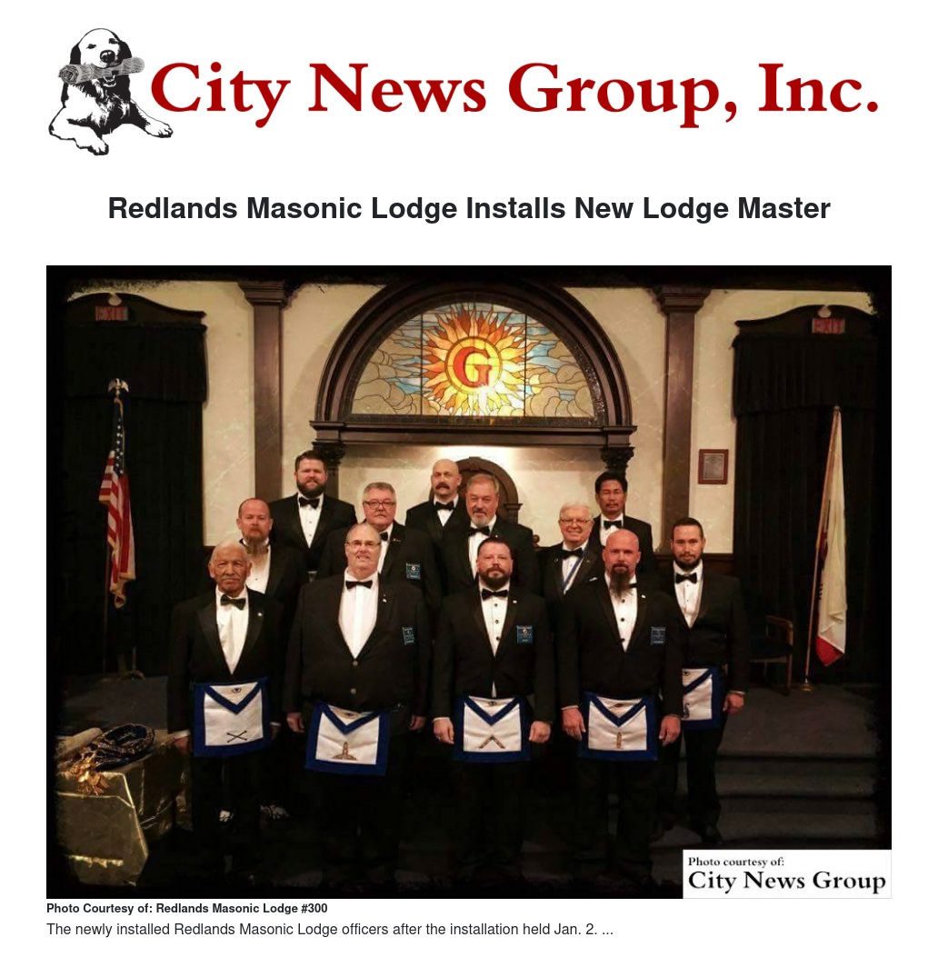 On Jan. 2, the Redlands Masonic Lodge #300, founded in 1890, recently held its 126th installation of officers. Redlands resident, John Montgomery, was installed as the lodge's 2016 Lodge Master.
