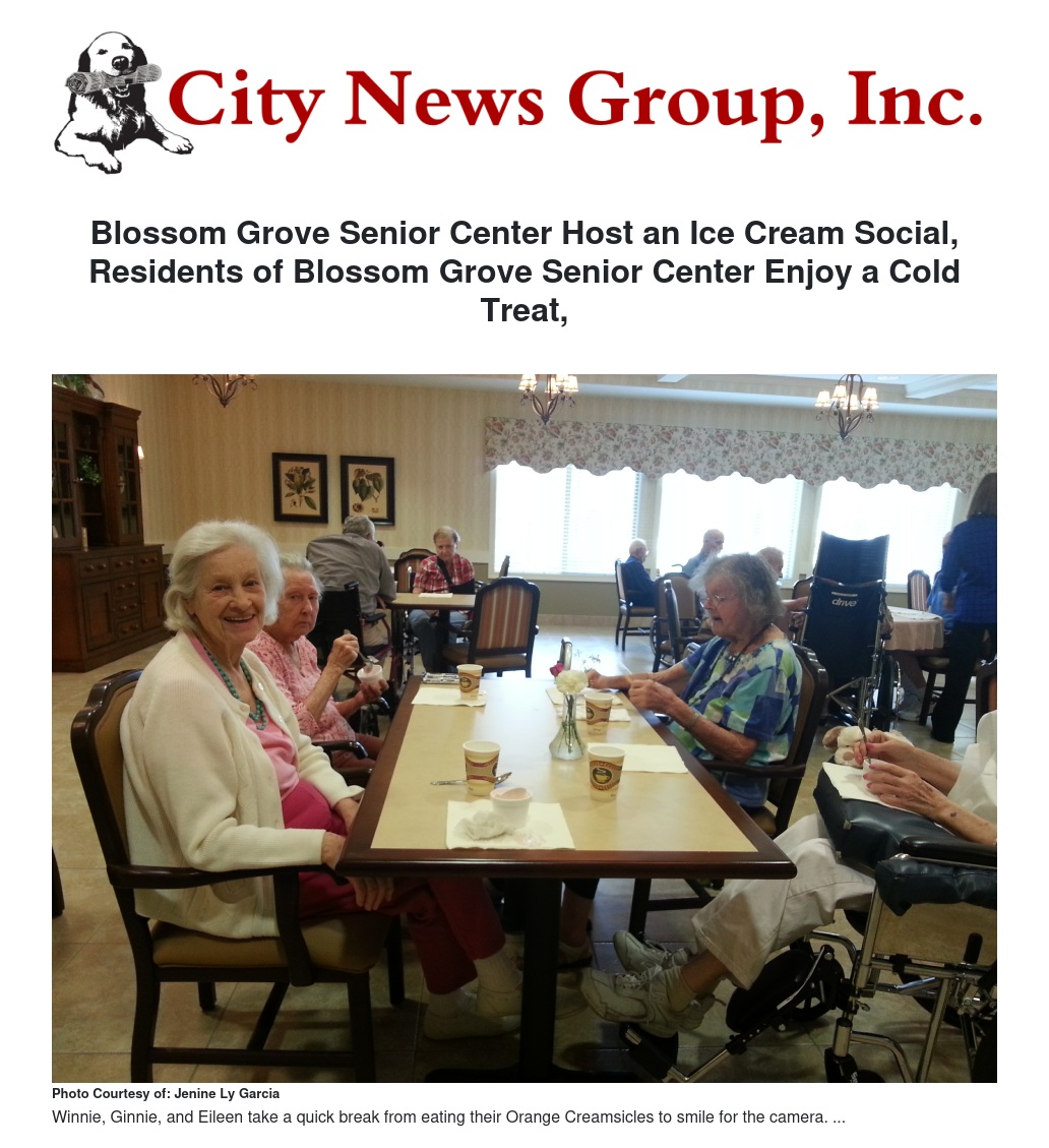 Blossom Grove Senior Center Host an Ice Cream Social, Residents of Blossom Grove Senior Center Enjoy a Cold Treat,