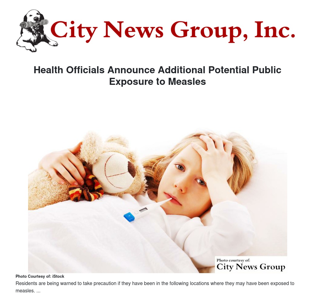 Health Officials Announce Additional Potential Public Exposure to Measles