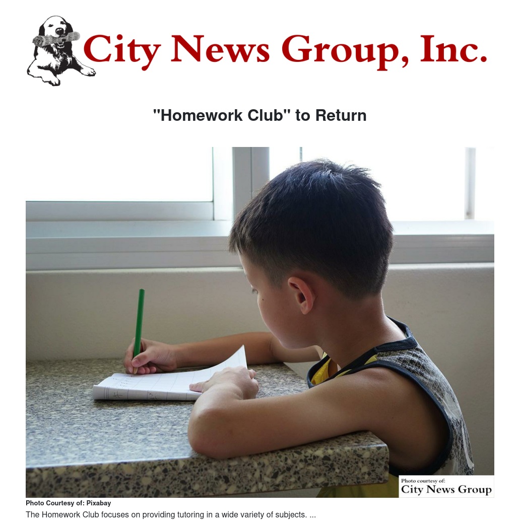 For further information on the Homework Club, please call (909) 381-8205 or (909) 383-5156.