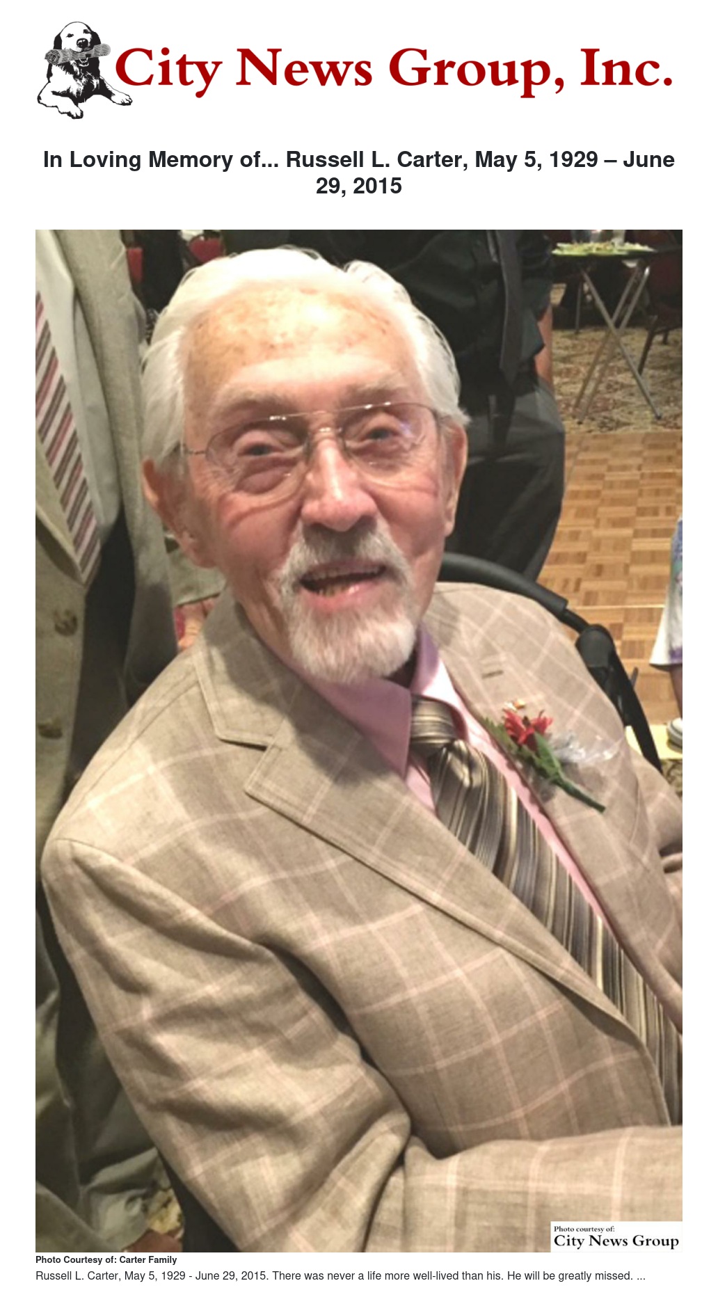 In Loving Memory of... Russell L. Carter, May 5, 1929 – June 29, 2015