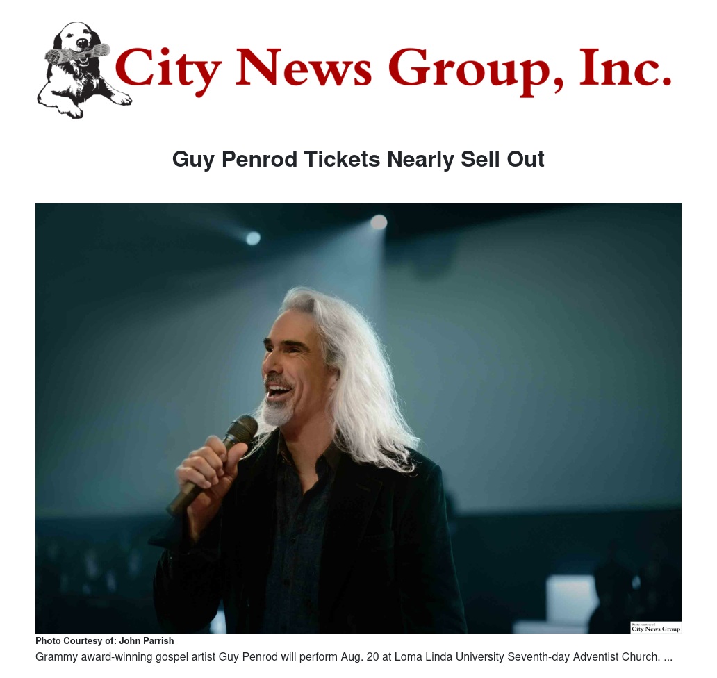 ALL>> Advance tickets for the August 20 concert by Grammy award-winning gospel artist Guy Penrod are still available online and by telephone, but sponsors of the event advise the tickets are approaching sell-out status in some seating categories.