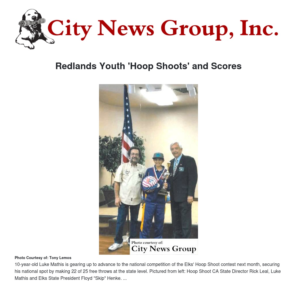 The "Hoop Shoot" event is what Hoop Shoot director Tony Lemos described as one of "the most well-kept secrets here in the West Coast." Funded by the Elks National Foundation - created in 1928 as the charitable arm of the Benevolent and Protective Order of the Elks, one of the country's oldest and largest fraternal organization - the annual Elks Hoop Shoot competition "offers youth the opportunity to engage in healthy competition, connect with their families and community and succeed both on and off the court," according to a release issued by the Elks National Foundation.