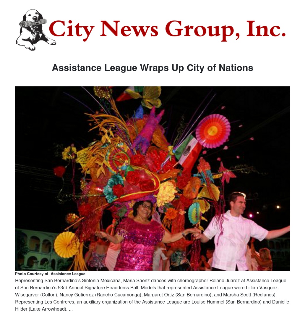 “Incorporating nations and knowing that we serve children of all nations says it all for me. As the 2014 Headdress Ball Chair I felt like I had to do something that would represent what San Bernardino Assistance League does in serving children from any nation and race,” shared Teresa Craig.