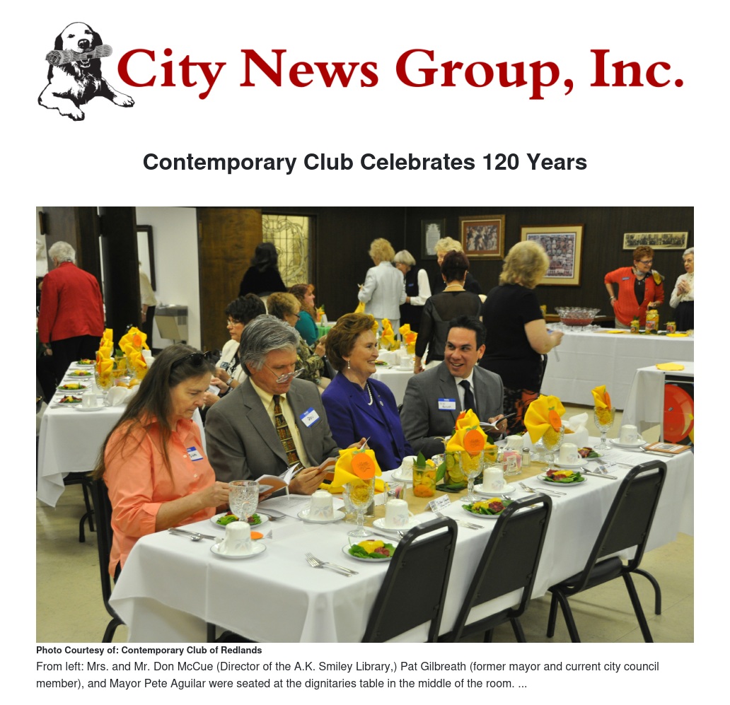 The Contemporary Club of Redlands celebrated its 120th birthday on Monday, Jan. 6, with a luncheon attended by more than 60 supporters, residents and members.