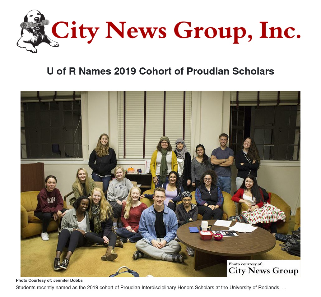 REDLANDS >> Future policymakers, anthropologists, sociologists, musicians and scientists were among the 15 students recently named as the 2019 cohort of Proudian Interdisciplinary Honors Scholars at the University of Redlands.